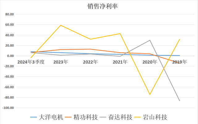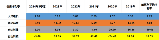 盈利能力:大洋电机>精功科技>奋达科技>岩山科技