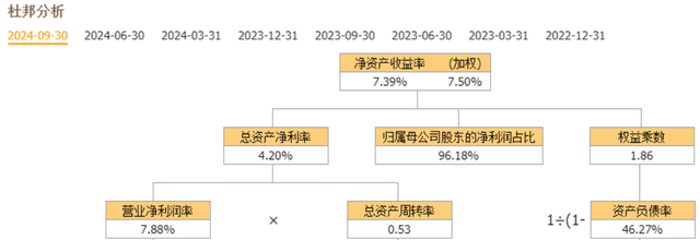 看完了公司的优势亮点,接下来,我们依然采用经典的杜邦分析法,将公司的财务核心数据净资产收益率进行拆解,
