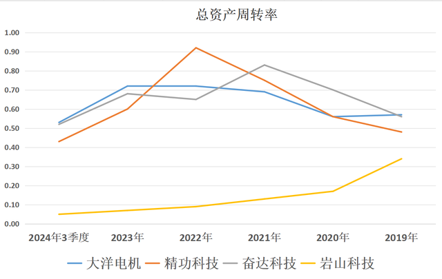 营运能力:大洋电机>奋达科技>精工科技>岩山科技